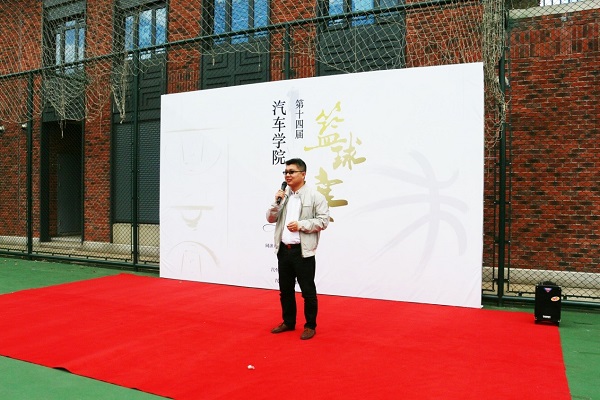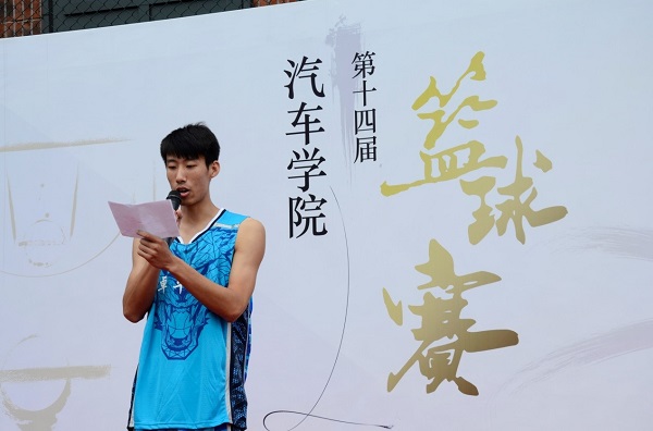 史成宇老师为本次篮球赛致辞,希望各位队员在赛场上展示出自己的风采,并祝愿本次大赛圆满完成。参赛队员代表高翔上台宣誓,本着友谊第一,比赛第二的原则,为各位师生校友们奉献精彩的篮球盛宴。