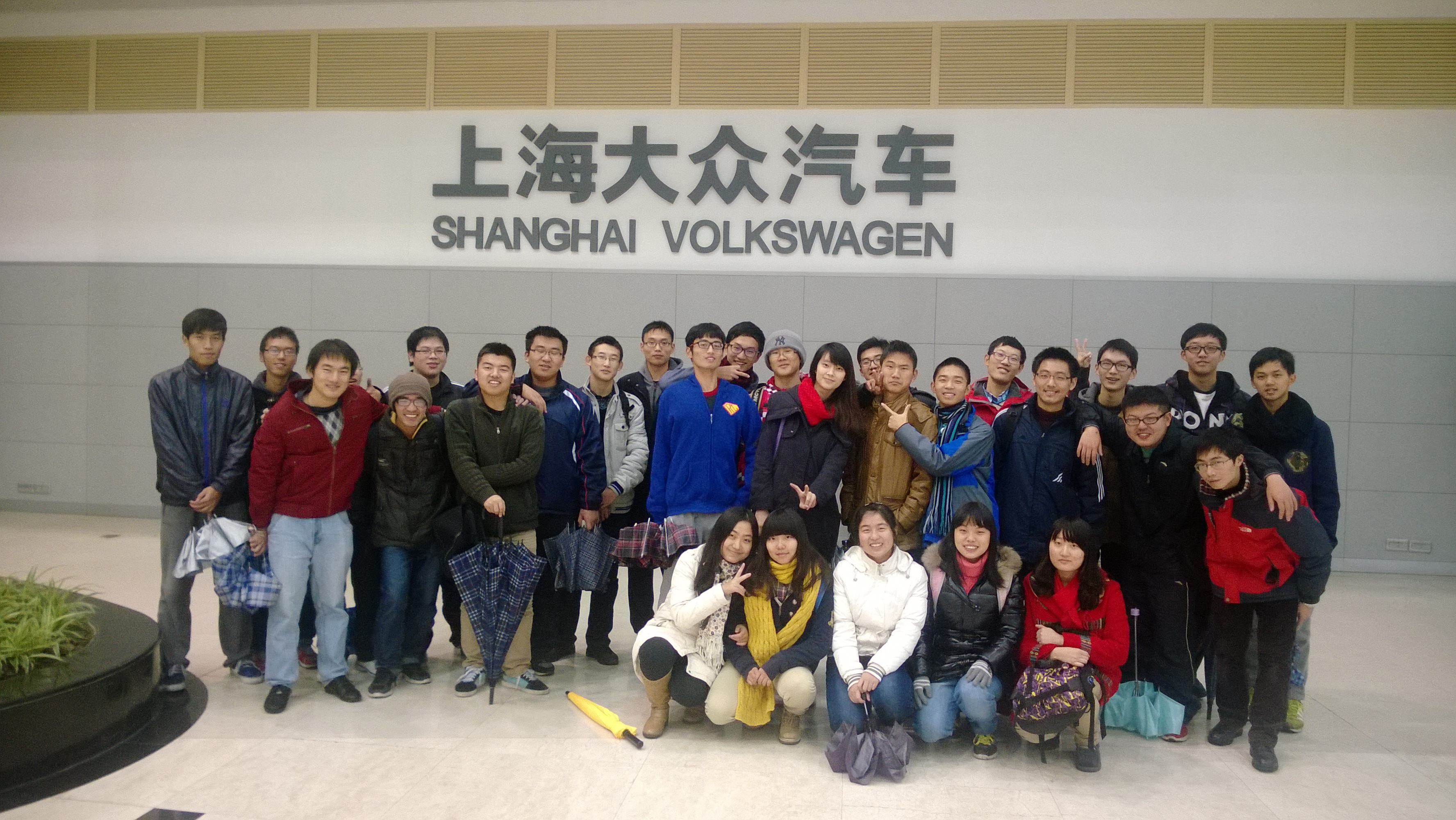 冬天的雨是冰冷的,冬天的风是凛冽的,不过,区区风雨,怎能冲淡我们前往上海大众三厂参观的热情呢。周二下午1点不到,校门口已经聚集了不少同学等着出发了。