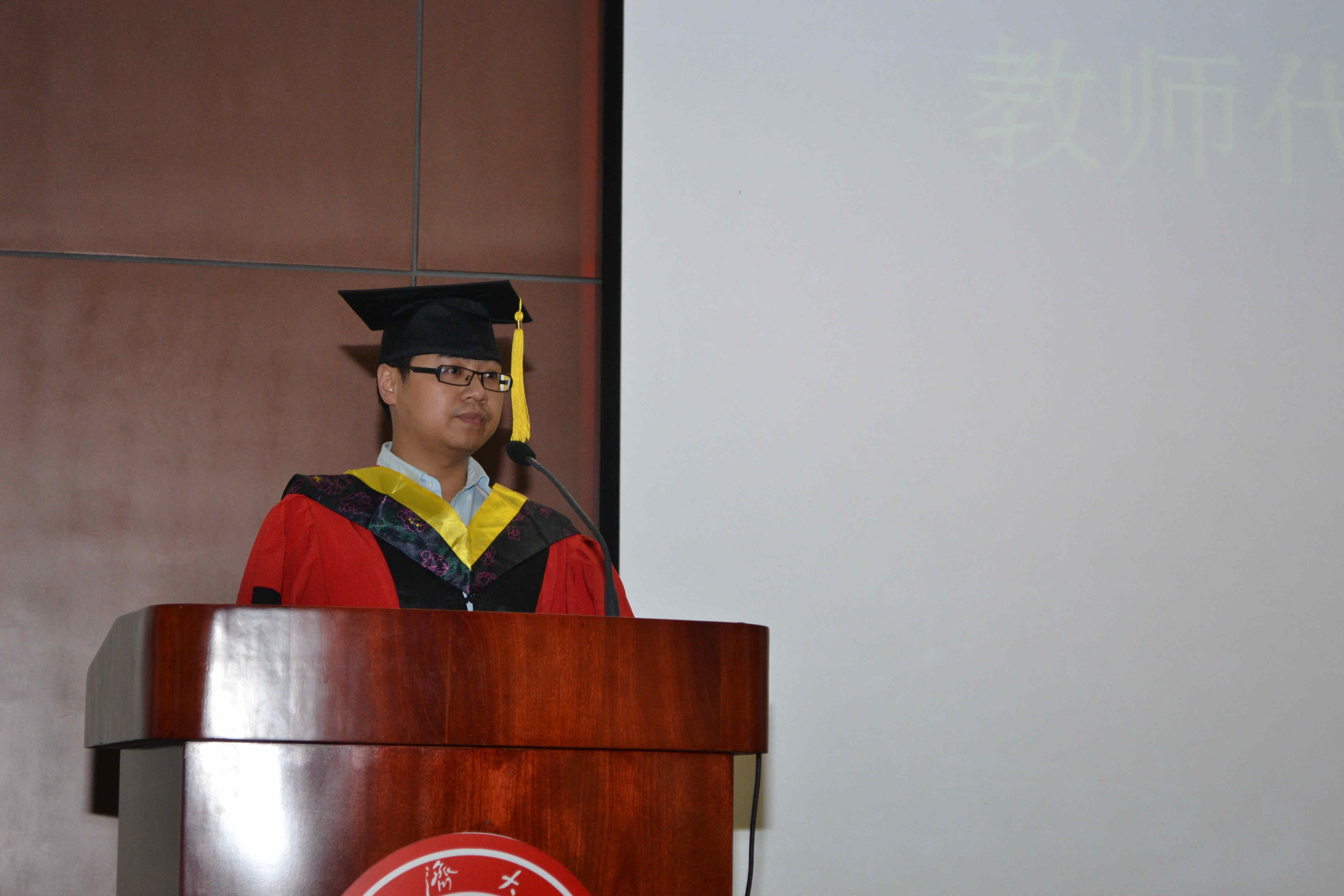 优秀毕业生名单,并与余院长、张立军老师、魏学哲老师一起为获得此荣誉的学生颁发了证书。随后余院长等十位老师为同学们颁发了学位证书并拨穗。