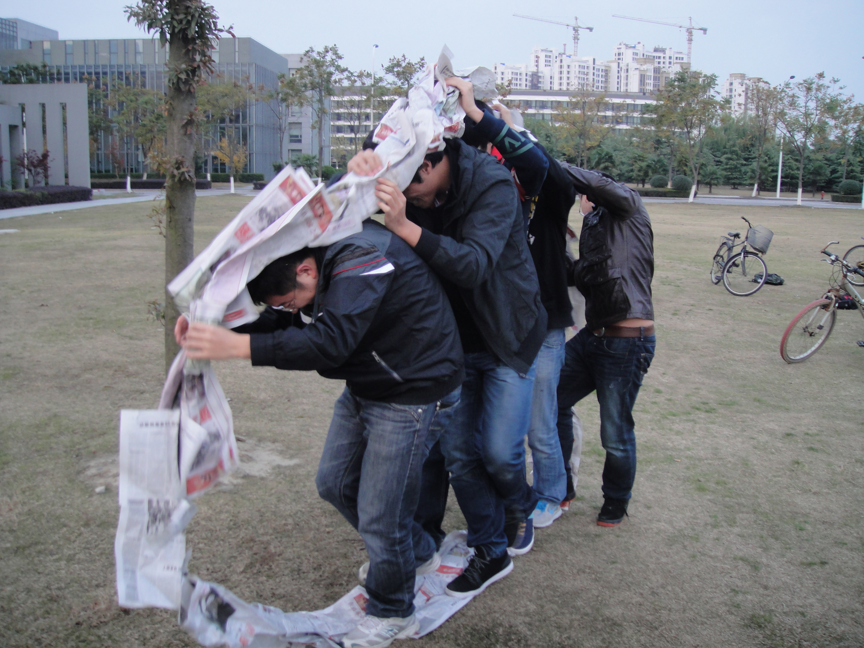 在本科2010级班长俞佳伟、张二奇同学的组织下,本次素质拓展分为两个环节:首先,大家做了“直呼其名”的游戏,通过这个游戏,各位班长通过自我介绍和相互间直呼其名,逐渐熟悉了彼此。随后,班长们被分为三组,开展了“无敌风火轮”比赛,旨在促进班长们在分工合作中增进了解,大家用旧报纸自制工具,随后展开激烈的比赛,最终095班长陆恺迪等同学所在小组以一分零四秒的成绩夺得了冠军,在一片欢笑声中,本次素质拓展活动圆满结束。